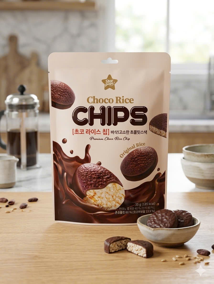 Thành phần: Bỏng gạo lứt cháy 40% [gạo lứt (Hàn Quốc) 80%, gạo lứt cháy (Hàn Quốc) 19,9%, chất tạo ngọt tự nhiên (Stevia được xử lý bằng enzyme) 0,1%], sô-cô-la hỗn hợp - Fancy Choco B1 60% [Đường trắng, dầu thực vật chế biến (Malaysia), bột ca cao (Singapore) 12,5%, bột váng sữa (Chile, Phần Lan, Mỹ, v.v.), sữa bột hỗn hợp 5% (sữa bột nguyên kem 85%, bột ca cao 15%), chất nhũ hóa (lecithin), vanillin, hương liệu tổng hợp (hương sô-cô-la), chất nhũ hóa (ester của glycerin với các acid béo)].
