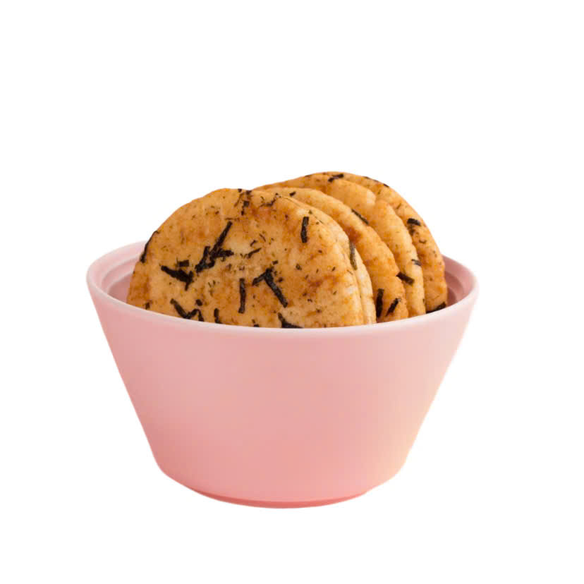 - Thành phần: Gạo 59,0%, Dầu cọ, Đường, Hỗn hợp gia vị (Bột gia vị hải sản, Chiết xuất nấm men, Chất làm dày, Tinh bột khoai tây, Muối), Bột nếp, Tinh bột sắn, Nước tương, Gia vị cá ngừ Bonito 1,4% (Gia vị cá ngừ Bonito, Siro Maltose, Nước tương, Giấm), Rong biển 0,9%, Muối,